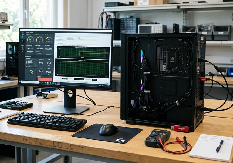 Stress test per stabilità, benchmark e verifica temperature/rumore. Forniamo report dettagliati.